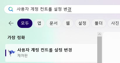 윈도우 검색 - 사용자 계정 컨트롤 설정 변경(관리자 권한)